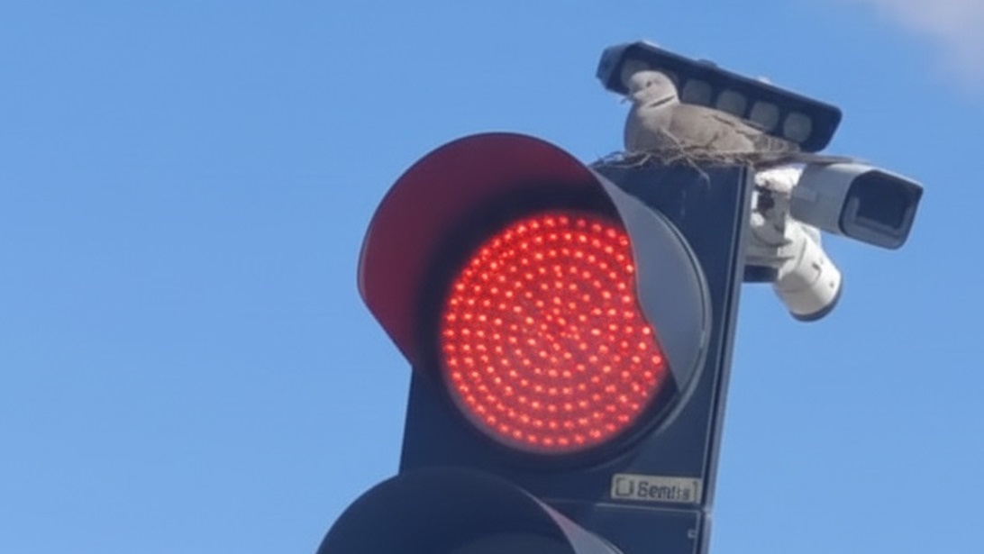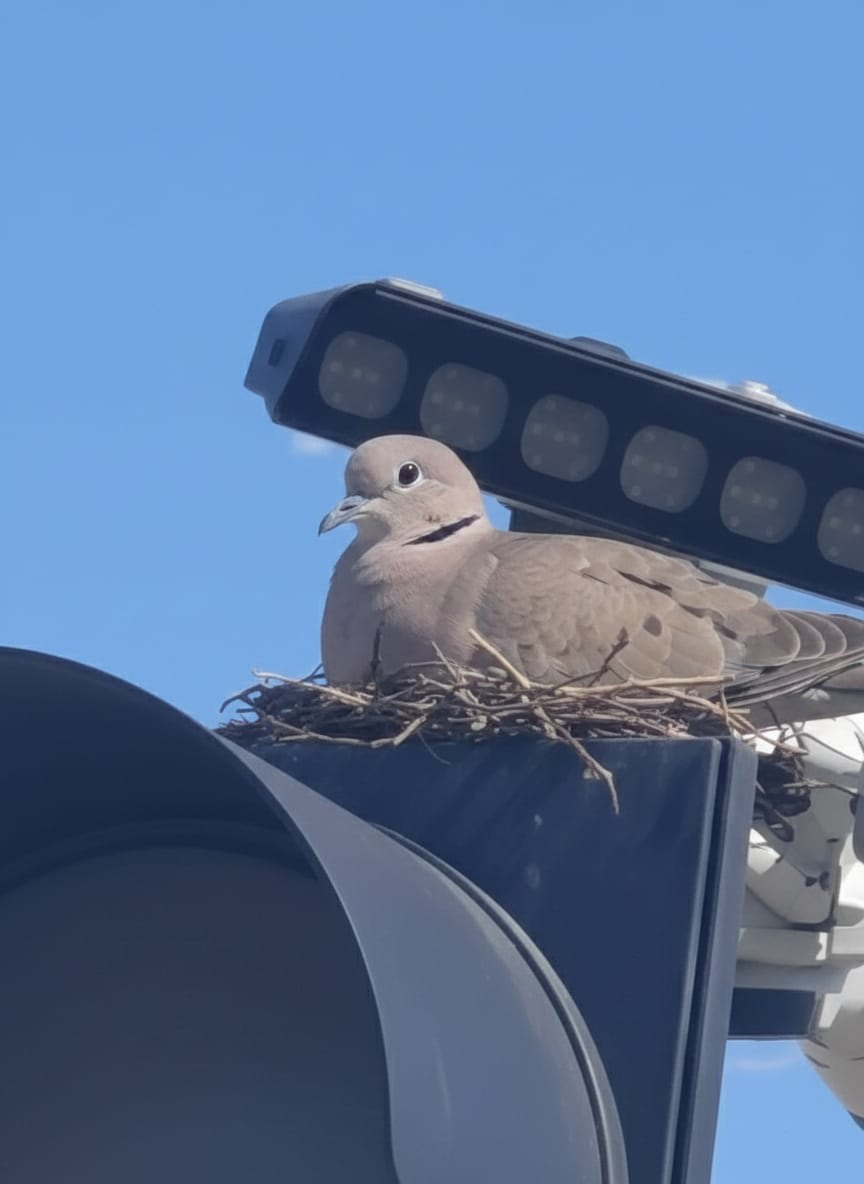Trafik ışıklarının yüksek konumu sayesinde kendisini güvende hisseden kuş, çevredeki korna seslerine ve yoğun araç trafiğine aldırış etmeden yumurtalarının üzerinde nöbet tutmaya devam ediyor.