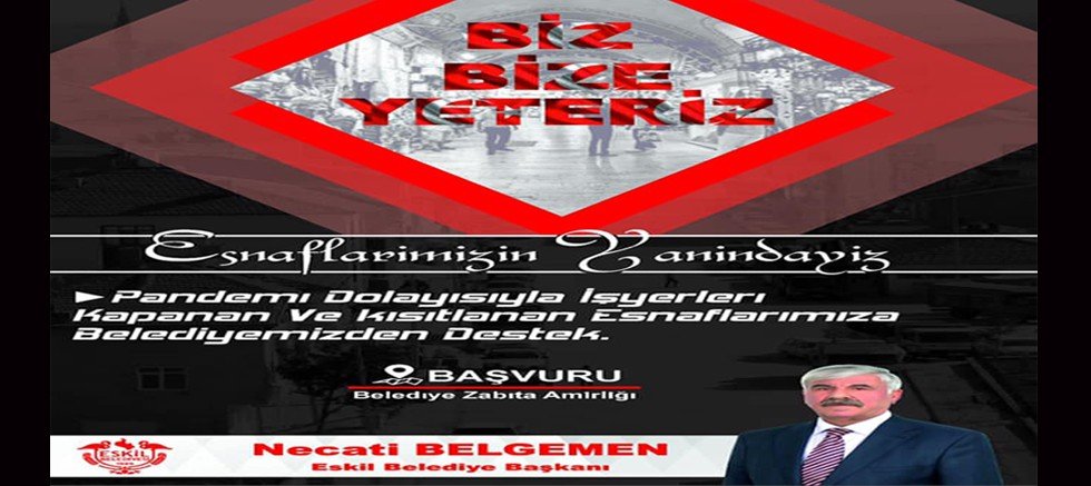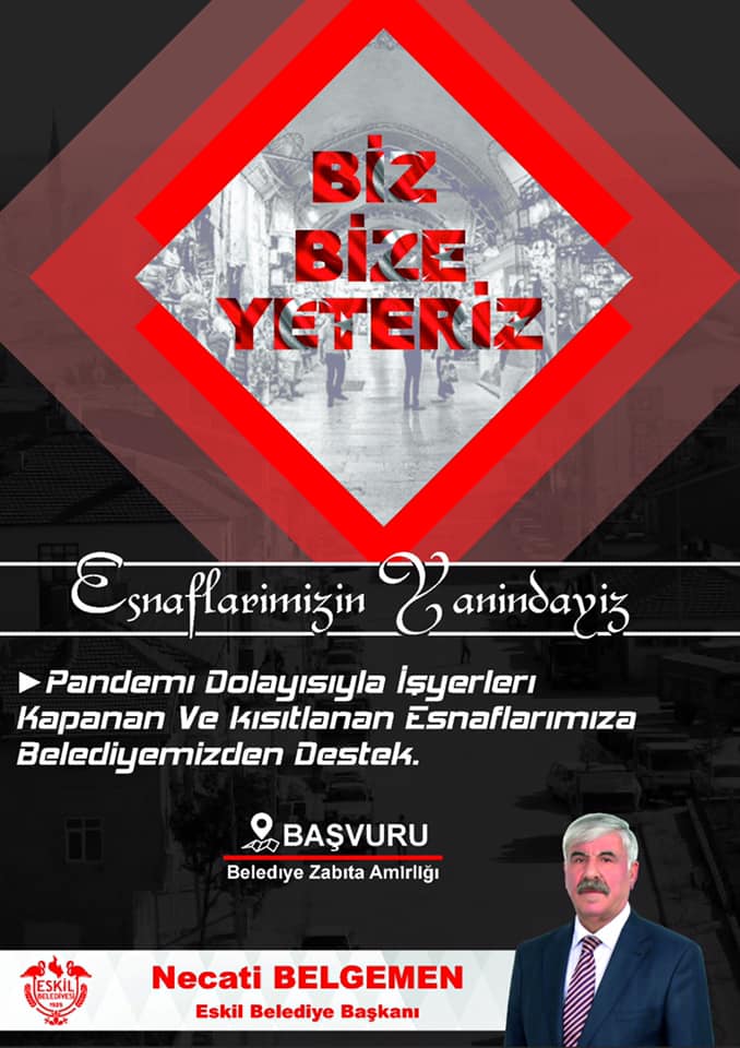 Eskil Belediyesi, pandemi sürecinde genelge ile işyeri kapatılan ve kısıtlanan esnaflara nakdi destek sağlayacak.