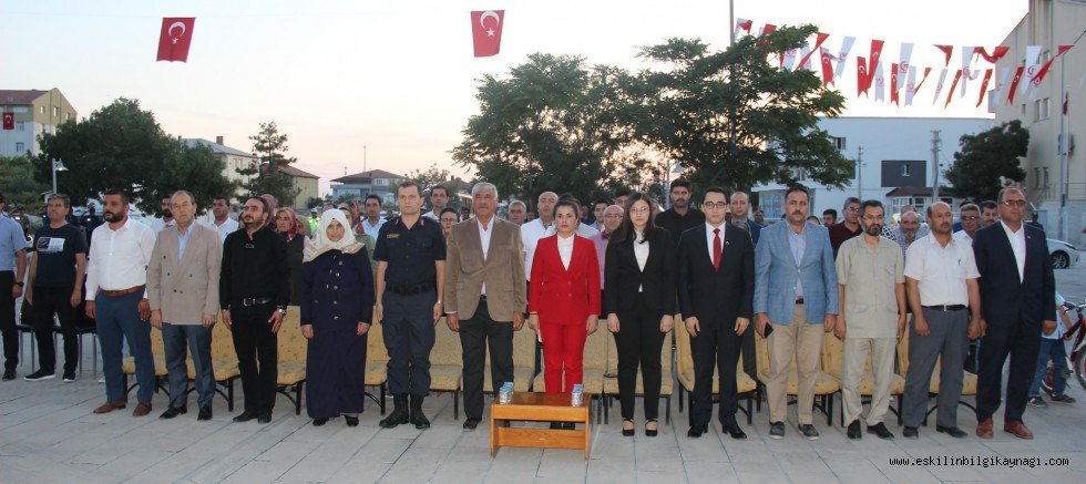 15 Temmuz Pazartesi günü saat:20.00’da Sayın Kaymakamımız, İlçe Belediye Başkanı, İlçe Jandarma Komutanı, İlçe Emniyet Amiri, Kurum Amirleri ve İlçe Halkının katılımlarıyla; Hükümet Konağı önünde saygı duruşu, İstiklal Marşımızın okunması, bir polis ve bir asker eşliğinde Bayraklarımızın göndere çekilmesi, Sayın Kaymakamımız Emine KARATAŞ’ ın günün anlam ve önemini belirten konuşması ve demokrasi nöbeti tutulan 15 Temmuz Pazartesi günü İlçemiz Hükümet Konağı karşısında saat: 20:00’da 15 Temmuz ruhunu yansıtan fotoğraf ve film gösterimi yapıldı, İlçemizde bulanan bütün camiden aynı anda 15 Temmuz’u 16 Temmuz’a bağlayan gece saat 00:13’de bütün camilerde sala okunması ile kutlamalar sona erdi.