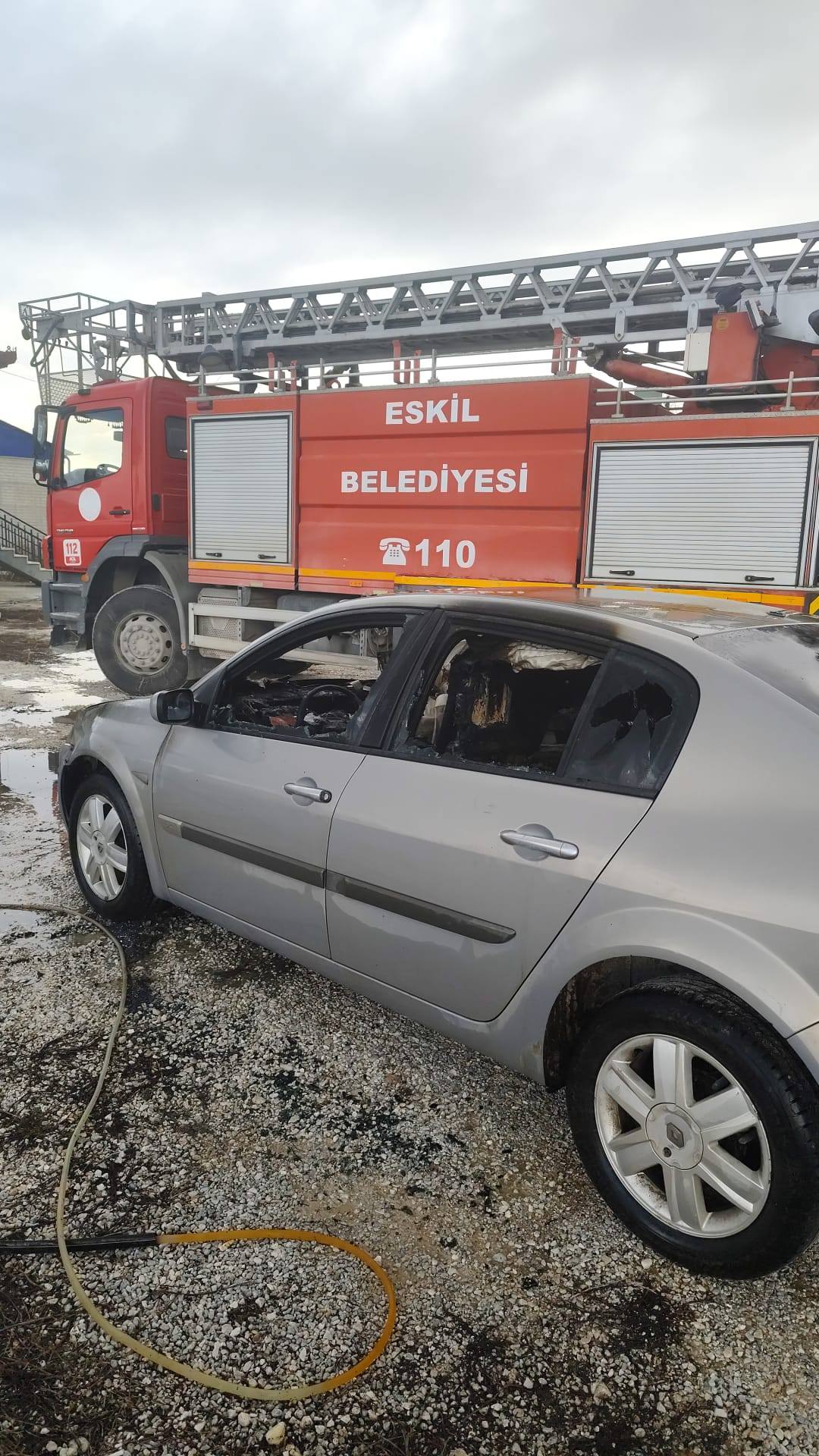 Aksaray’ın Eskil ilçesi Küçükbozcamahmut Yaylası’nda, R. Talaşlı’ya ait 68 ADA 135 plakalı otomobilde, henüz belirlenemeyen bir nedenle yangın çıktı.