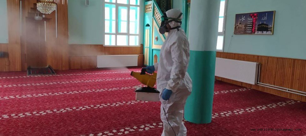 Son günlerde dünya genelinde etkili olan salgın hastalık riskine karşı ibadethane ve sosyal tesislerde ilaçlama ve dezenfekte çalışmalarına başlayan Eskil Belediyesi ortak kullanım alanlarını hijyenik hale getirmeye çalışıyor.