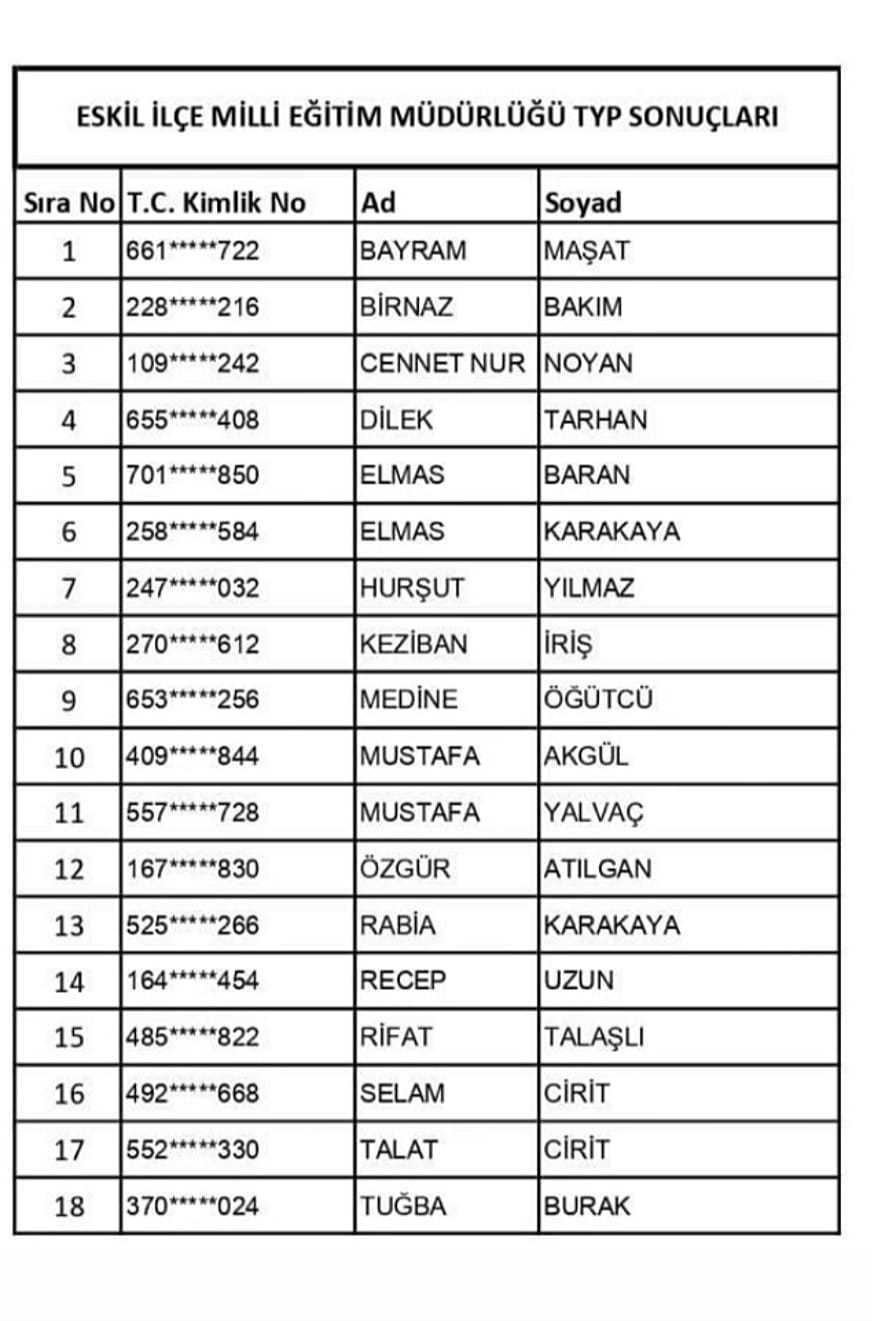 Eskil’de Okullar İçin Alınacak TYP İşçilerinin Kura Sonuçları